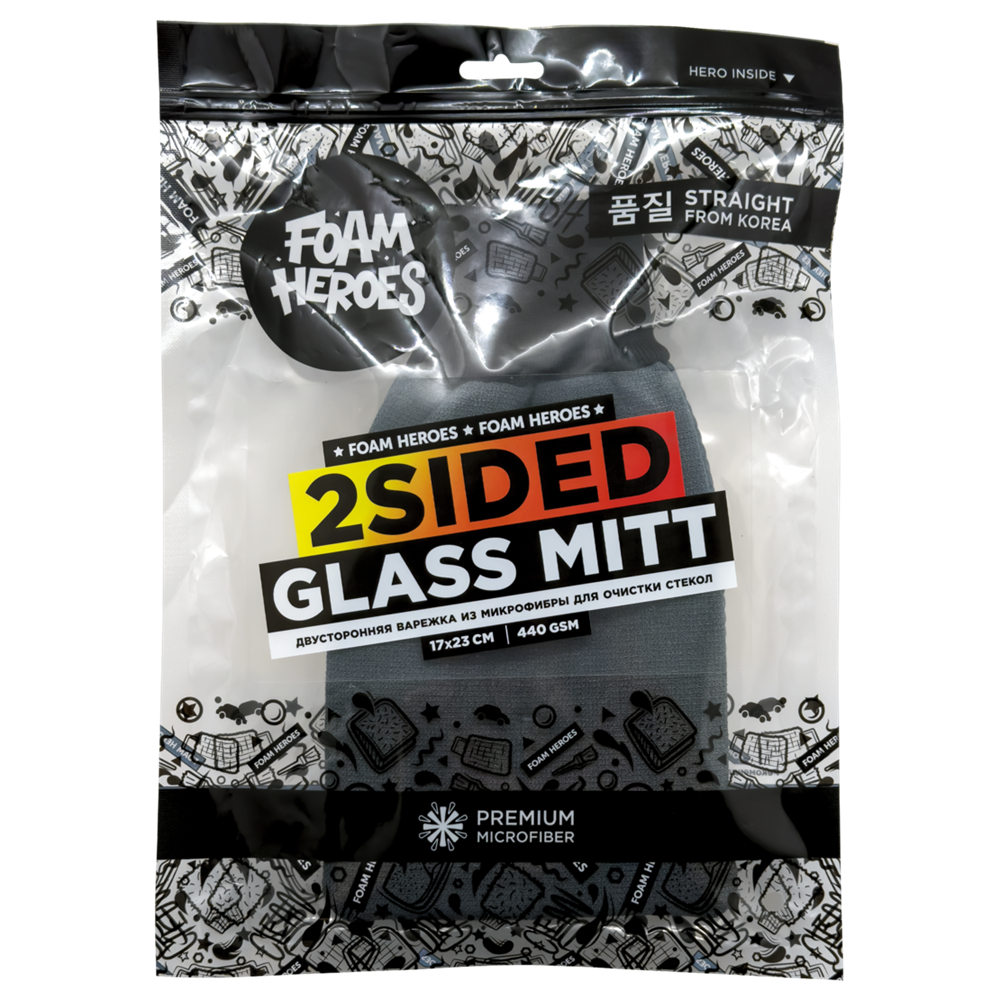 2Sided Glass Mitt - это специальная двусторонняя эргономичная варежка из высококачественной микрофибры для эффективной очистки стёкол с разносторонним плетением waffle и fancy weave.