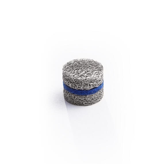 Трёхслойная пенная таблетки состоит из 2х металлических частей и одной поролоновой в центре, данная конструкция позволяет улучшить структуру пены, получаемую на выходе из пенокомплекта.