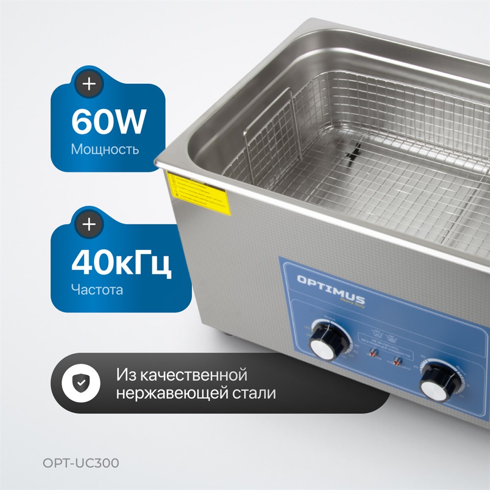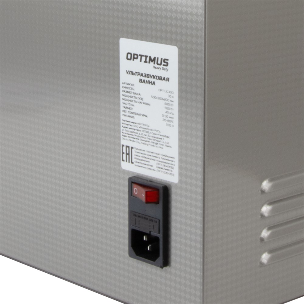 Ультразвуковая ванна OPTIMUS OPT-UC300 для очистки различных деталей, узлов и механизмов от загрязнений путем воздействия высокочастотных ультразвуковых колебаний в моющем растворе. Мойка оснащена механическим таймером до 30 минут и подогревом до 80 °C. Подогрев способствует ускорению физических процессов, сокращается время очистки предметов. Мойка укомплектована корзиной, ножки которой имеют резиновое покрытие, защищающее поверхность бака от механических повреждений. Спусковой кран, к которому в комплекте предусмотрен шланг, упрощают процесс слива раствора из устройства. Корпус выполнен из качественной нержавеющей стали, что способствует увеличению срока эксплуатации. Мощность ультразвука 600 Вт, мощность нагрева 500 Вт.