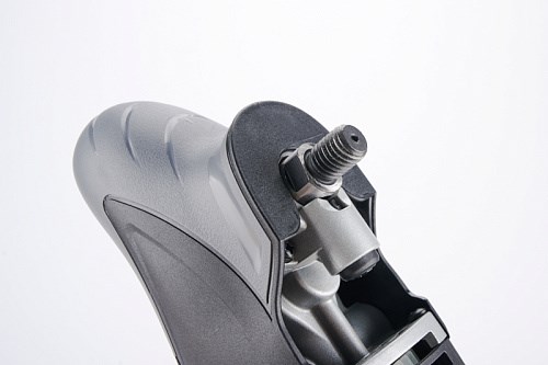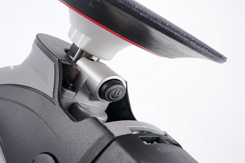 Кнопка блокировки шпинделя перенесена на нижнюю часть под редуктор для предотвращения случайного нажатия в процессе полировки.