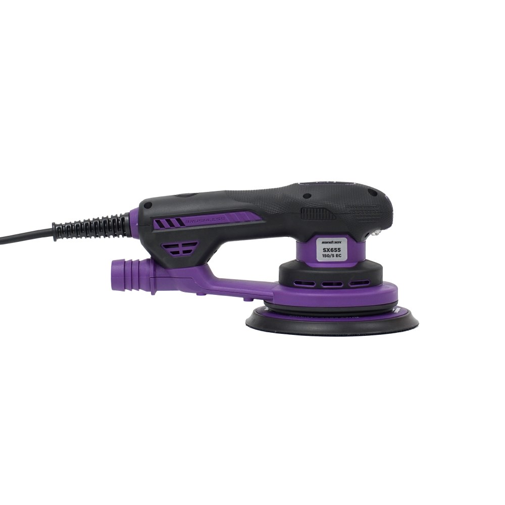 SANDWOX SX655 150/5 EC – электрическая шлифмашинка с бесщеточным двигателем. Отличается компактными размерами и эргономичным дизайном, имеет независимую систему охлаждения мотора и отведения пыли. Специально разработанная диск-подошва (8 каналов) повышает эффективность пылеотвода. Предназначена для промышленного использования и предварительного этапа перед полировкой в мастерских, а также для грубой и промежуточной шлифовки лака, грунтовки, шпатлевки или дерева. В этой модели значительно улучшены механизмы антивибрационного баланса.
