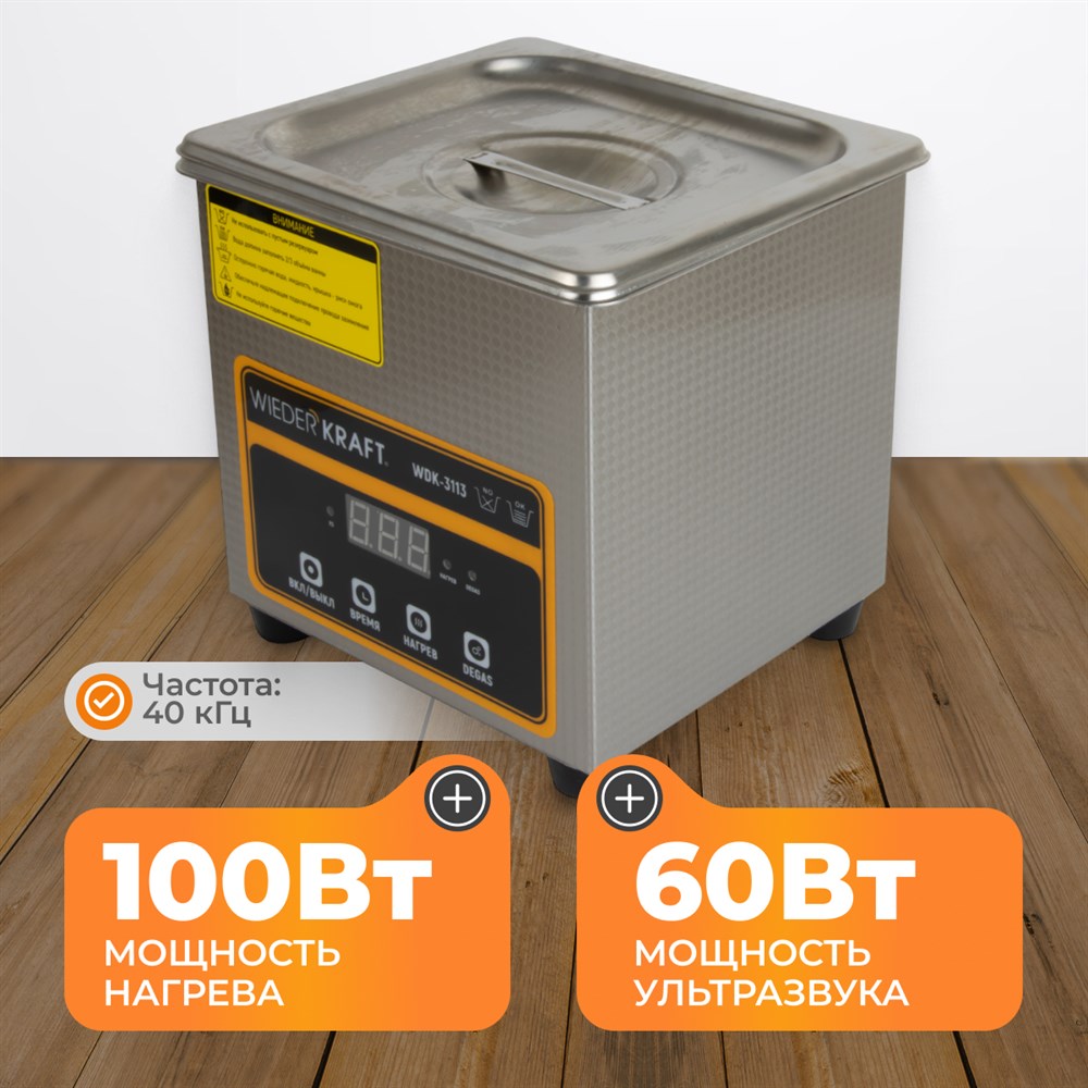 Ультразвуковая ванна (мойка) предназначена для очистки различных деталей, узлов и механизмов от загрязнений. Очистка осуществляется путем воздействия высокочастотных ультразвуковых колебаний в моющем растворе. Ультразвуковая ванна используется в качестве вспомогательного устройства для очистки деталей при ремонте и реставрации. Модель имеет функцию нагрева на 65°С, а также встроенную регулировку времени очистки (7 режимов работы): от 60 сек до 60 минут.