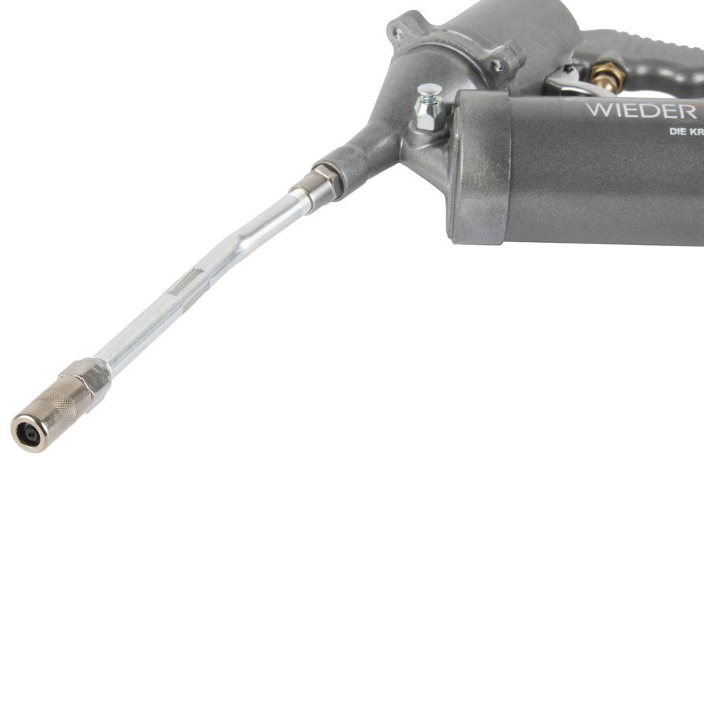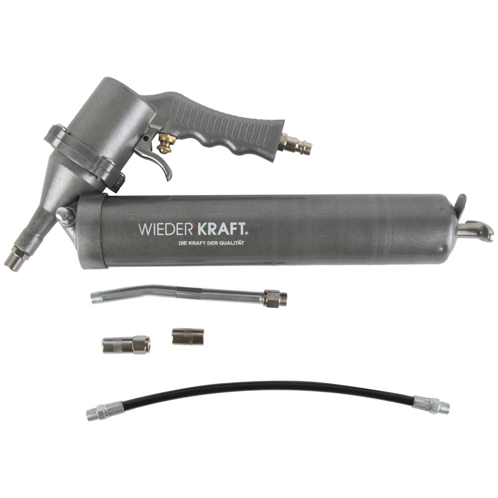 Пневматический шприц WIEDERKRAFT WDK-65154 предназначен для подачи консистентных смазок в узлы и агрегаты автомобилей, спецтехники и промышленного оборудования. Инструмент подключается к пневмосети и обеспечивает равномерную, импульсную подачу смазки под давлением, что значительно ускоряет и облегчает процесс обслуживания по сравнению с ручными аналогами.
