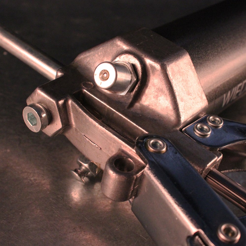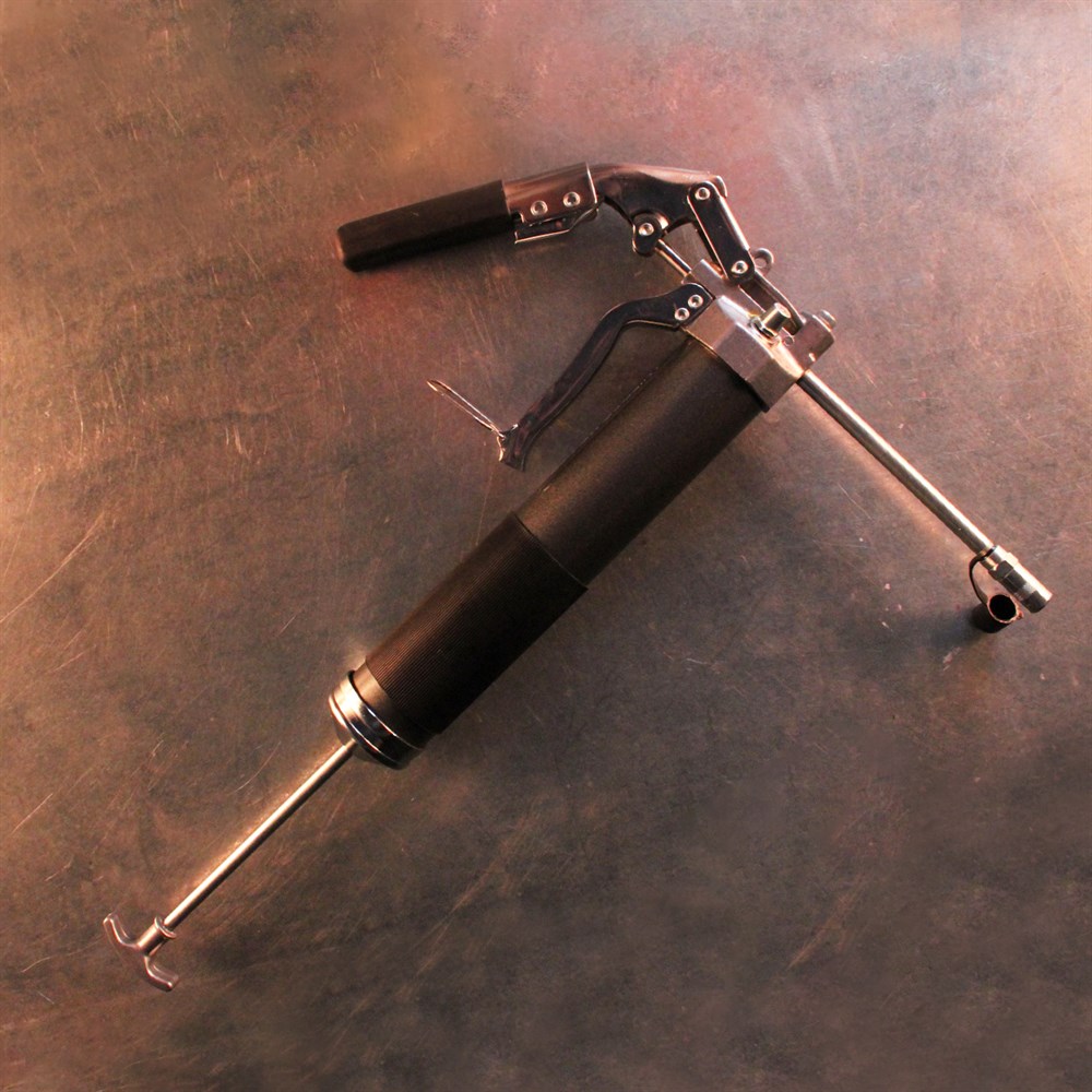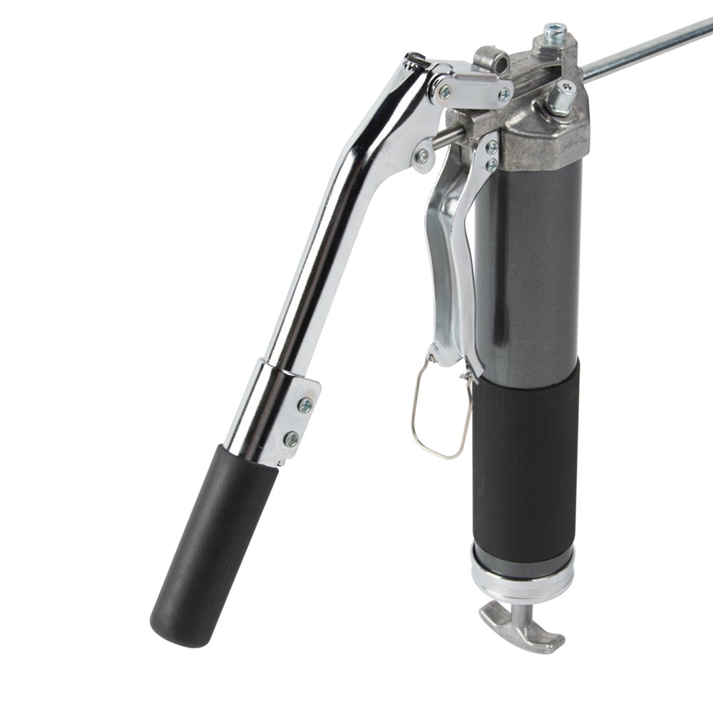 Оснащен удобным рычажным механизмом с противоскользящей рукояткой, что обеспечивает стабильную подачу смазки даже при работе в загрязненных условиях. Конструкция позволяет работать одной рукой.