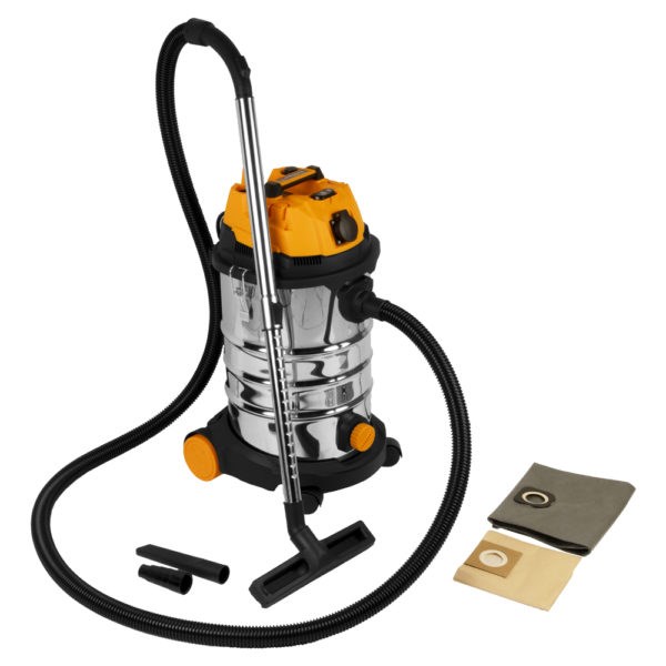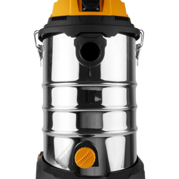 Промышленный пылесос WiederKraft WDK-DUSTER L+ с баком на 30 литров и мощностью 1600 Вт, который применяется для сбора стружки, строительного мусора и жидкостей. Устройство имеет класс защиты L, что подтверждает его безопасность. Его HEPA-фильтр улавливает даже мелкодисперсную пыль. Бак выполнен из нержавеющей стали и оснащен специальным отверстием для быстрой утилизации жидкости. На крышке пылесоса предусмотрены специальные держатели для аксессуаров, что позволит держать необходимые принадлежности под рукой. На корпусе аппарата встроена розетка для подключения электроинструмента, которая обеспечивает синхронность включения приборов. Поворотные колеса позволяют добиться мобильности при перемещении пылесоса.