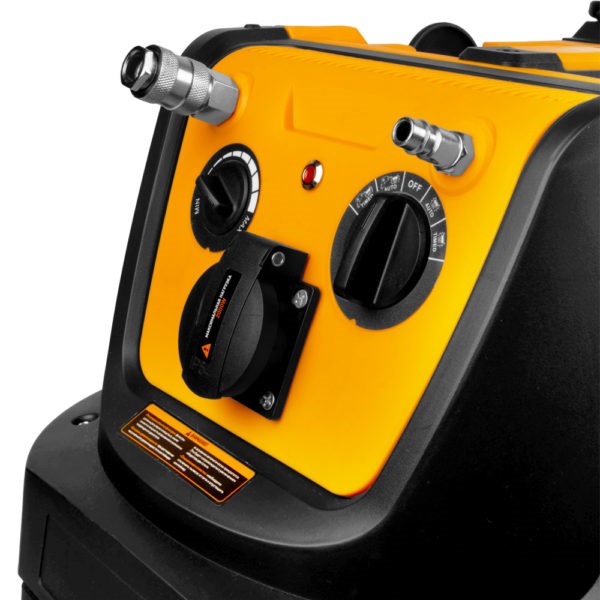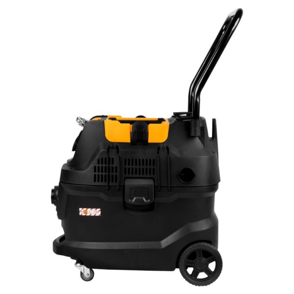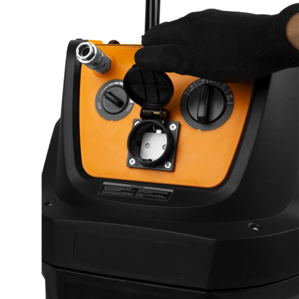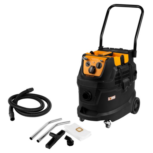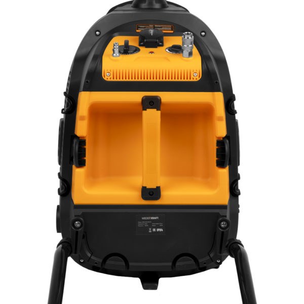 Промышленный пылесос WiederKraft WDK-DUSTER EP+ с баком на 40 литров и мощностью 1600 Вт, который предназначен для сбора пыли, образующейся в процессе зачистных и шлифовальных работ, а также других видов промышленных процессов, сопровождающихся образованием пылевых загрязнений. Благодаря HEPA-фильтру он эффективно удаляет мельчайшие частицы пыли и аллергены, обеспечивая чистый и безопасный воздух в помещении. Вместительный бак из нержавеющей стали объёмом 40 литров позволяет работать долгое время без частых остановок. Встроенная штепсельная розетка на корпусе позволяет подключать электроинструменты, синхронизируя их работу с пылесосом. Пневматические разъёмы позволяют подключить к пылесосу пневматический инструмент или воздушный компрессор. Комфортная работа обеспечивается благодаря регулируемой рукоятке. Функция самоочистки фильтра HEPA позволяет быстро и эффективно удалять пыль с фильтра прямо во время работы. Для влажной уборки имеется губчатый фильтр. Кроме того, пылесос способен всасывать небольшое количество воды. Корпус пылесоса WDK-DUSTER EP+ изготовлен из ударопрочного пластика, который обладает высокой устойчивостью к коррозии и механическим повреждениям.