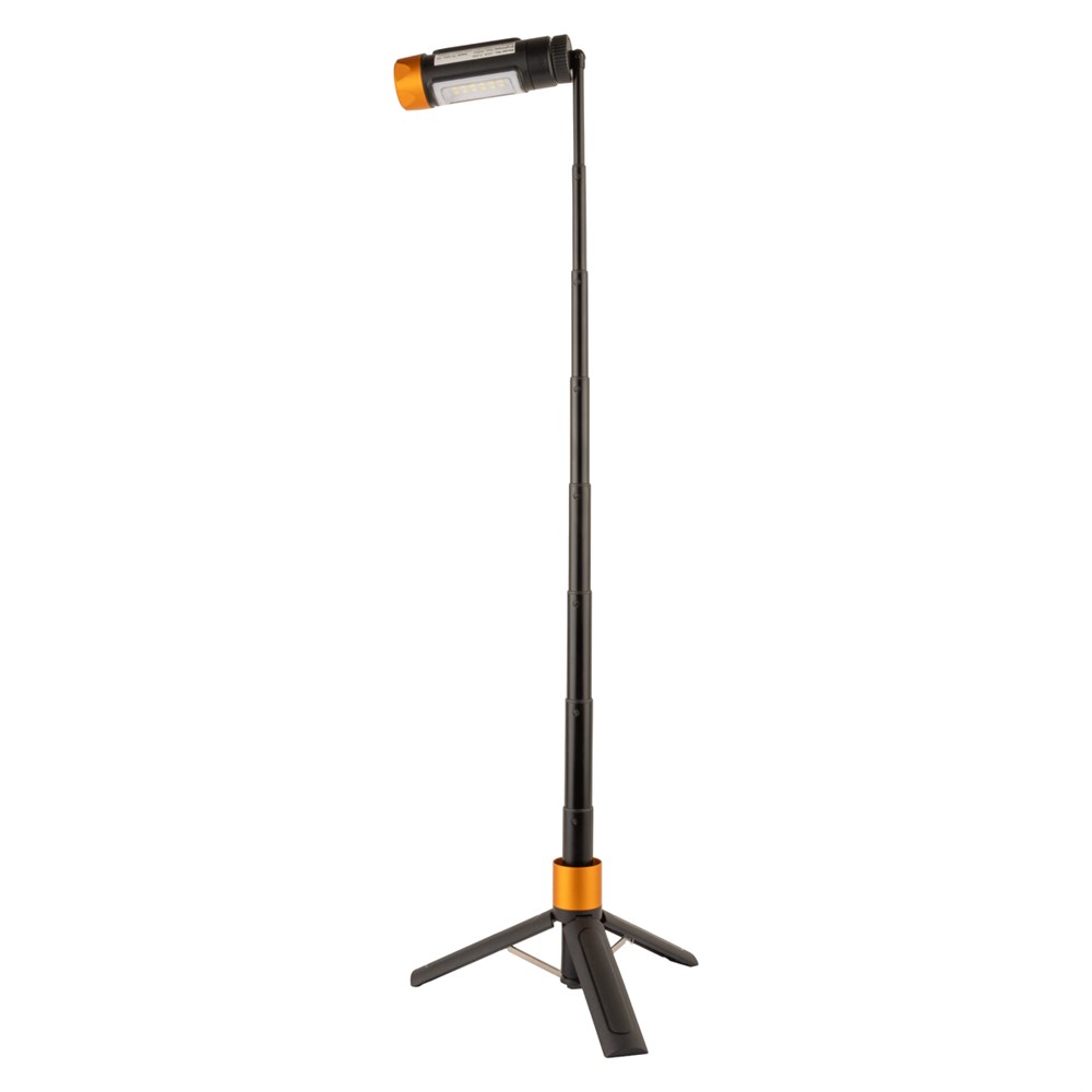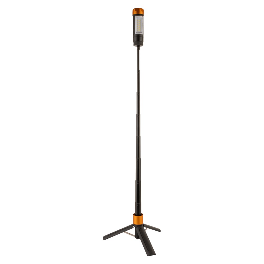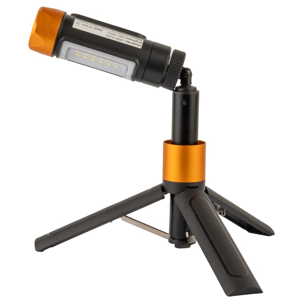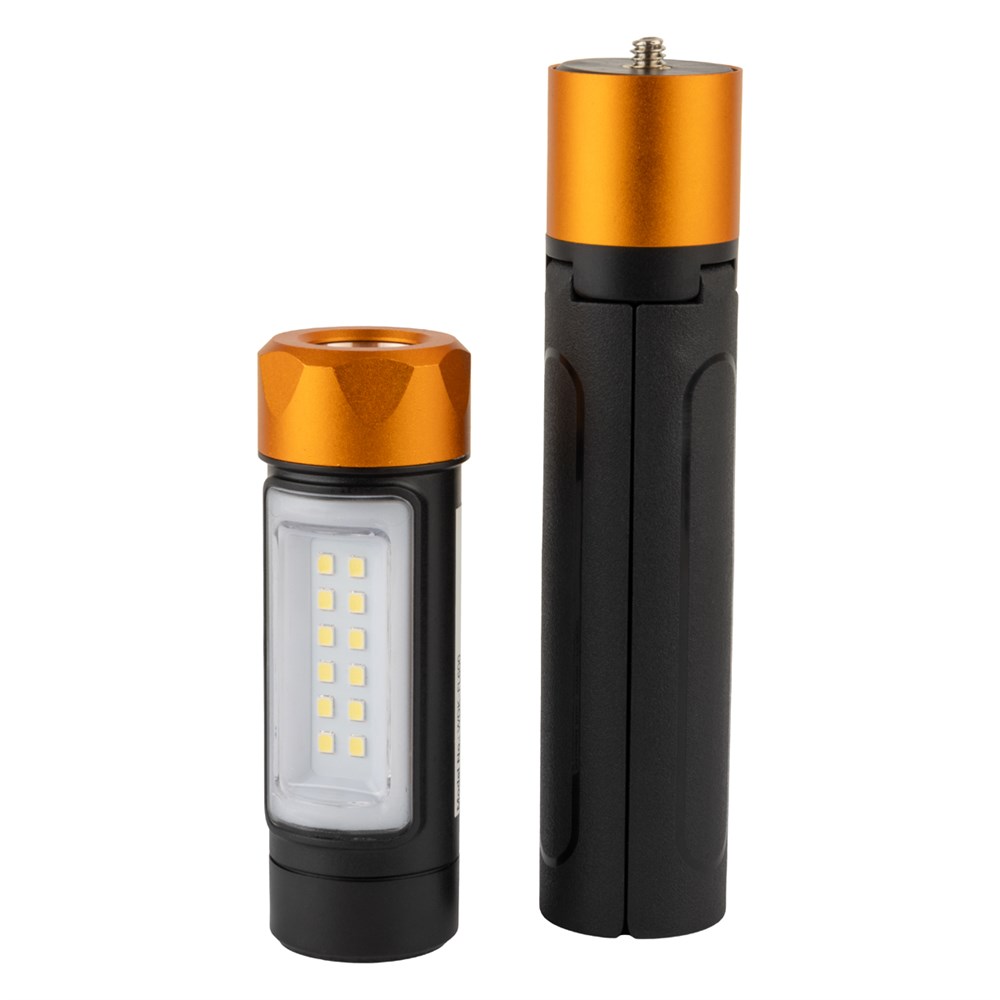 - Складная конструкция с регулируемым штативом: Оснащен удобным штативом с винтовым креплением и возможностью регулировки высоты и наклона, что позволяет устанавливать фонарь в нужном положении.