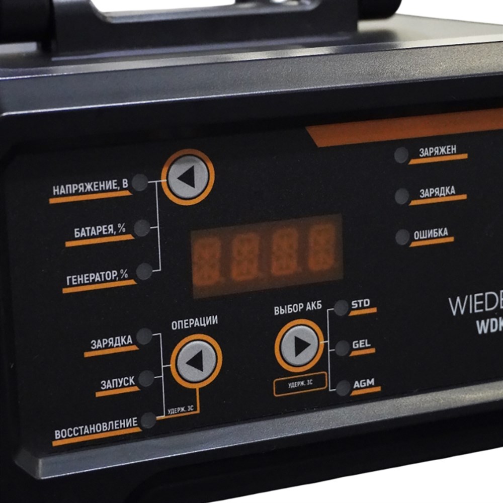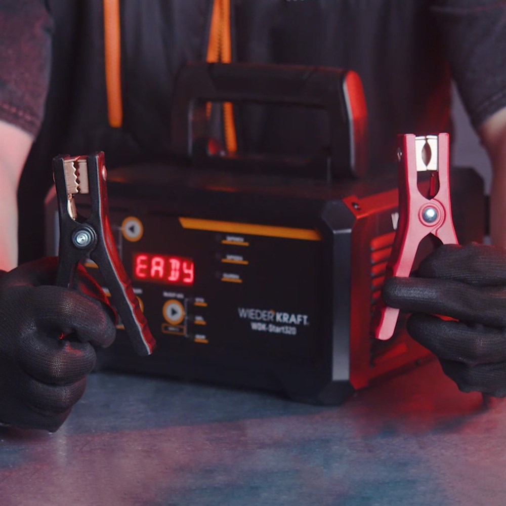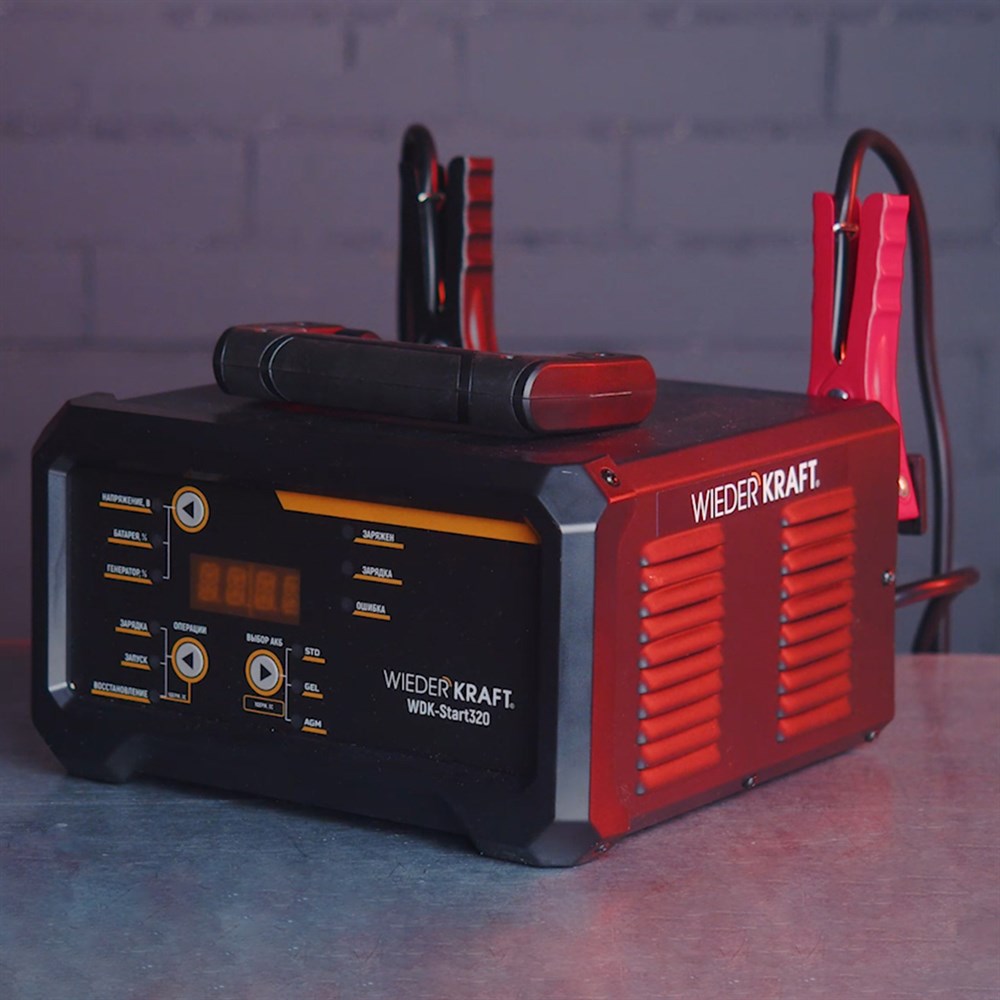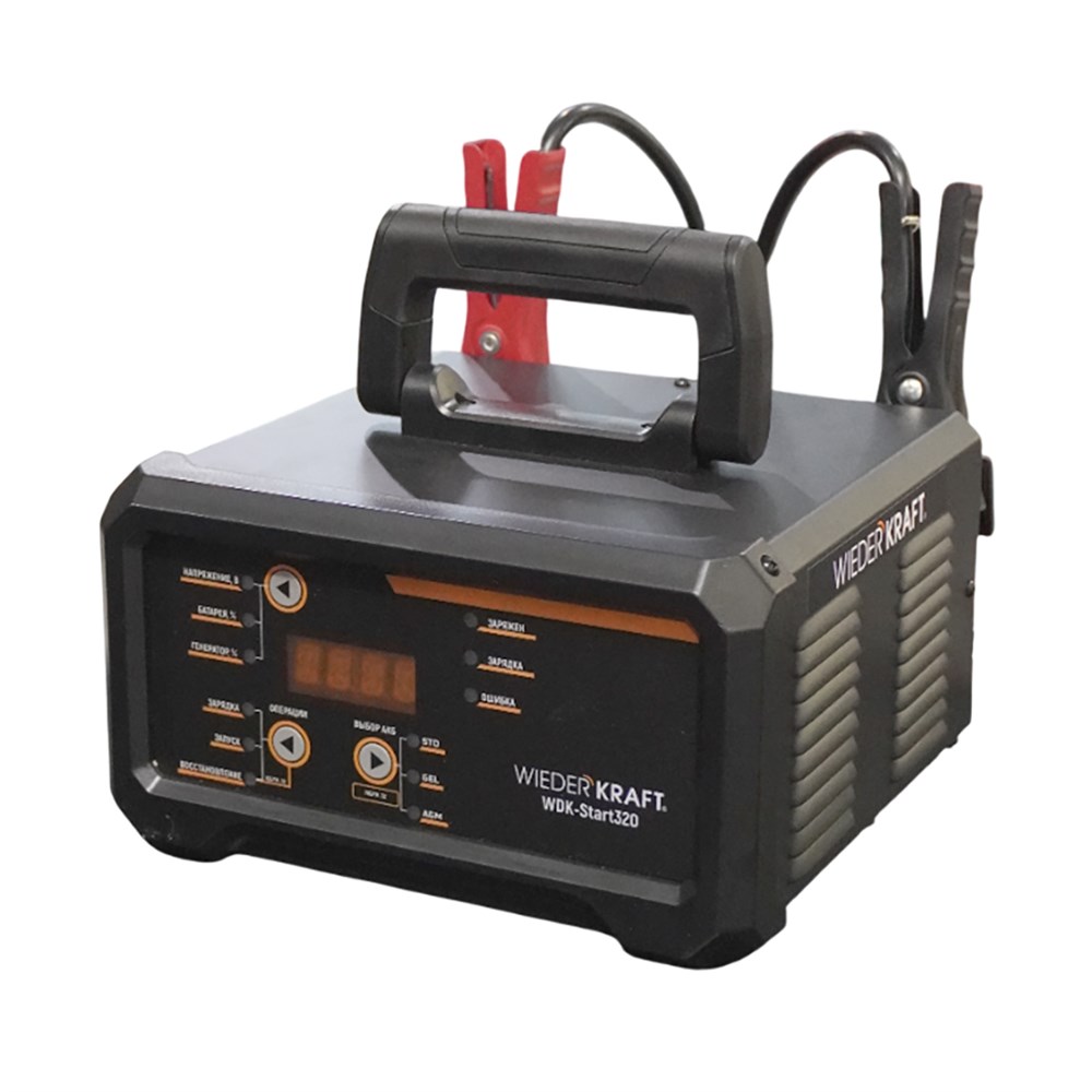 Пуско-зарядное устройство интеллектуальное, 300А, 12/24В WiederKraft WDK-Start320 мощное и многофункциональное пуско-зарядное устройство, предназначенное для работы с аккумуляторными батареями напряжением 12В и 24В. Оно идеально подходит для запуска автомобилей, грузовиков, мотоциклов, лодок и другой техники, а также для зарядки и восстановления аккумуляторов различных типов.