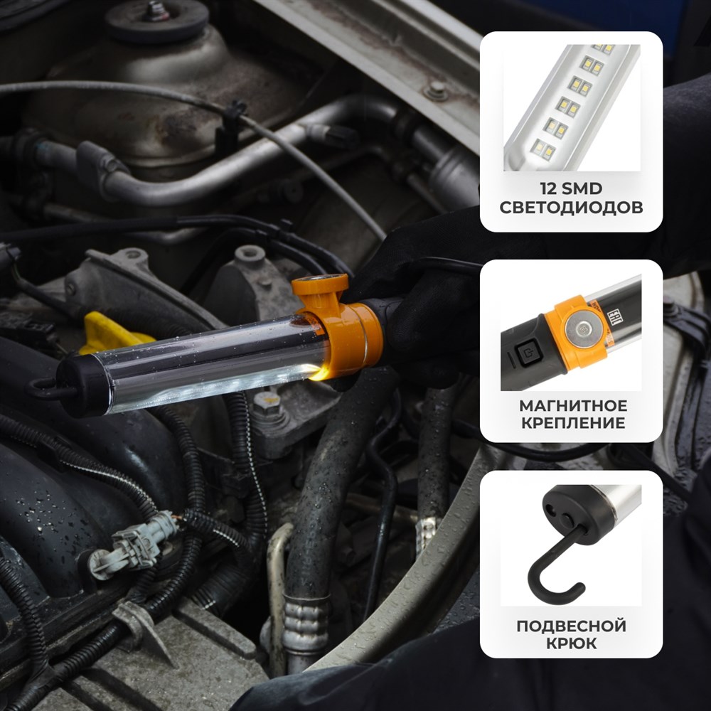 Кабель светильников обладает устойчивостью к морозам и воздействию технических жидкостей, таких как масло и бензин, что делает его идеальным для использования в автосервисах.