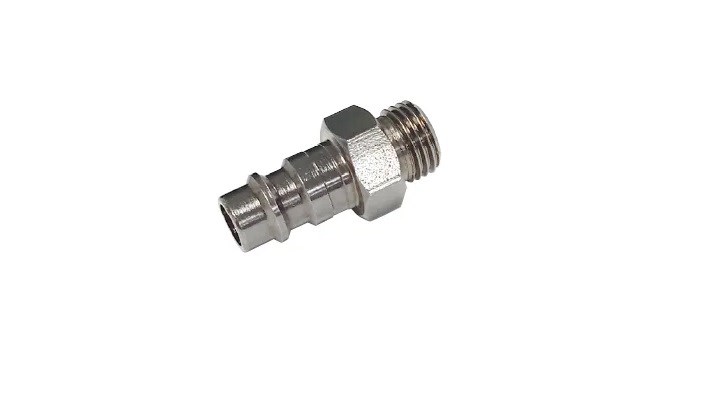 Штекеры с наружной резьбой к быстроразъемным соединениям (стандарт D). Применяются для соединения различных частей пневмосистем. С одной стороны штекер имеет наружную резьбу — M 1/4″, а с другой быстросъемное соединение — рапид «папа». Созданная конструкция обладает высокой надежностью и герметичностью.