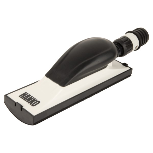 HANKO N002 — шлифовальный блок 70 х 198 мм с набором сменных насадок, который применяется для ручной обработки различных поверхностей. Оборудован пылеотводом для максимально беспыльного выполнения работ. Снабжен клапаном для регулирования мощности всасывания и оптимизации потока воздуха и пыли. В комплекте 4 насадки различной формы для обработки прямых и рельефных поверхностей. Насадки легко заменяются и имеют тип крепления Velcro. Легкая конструкция дает возможность работать инструментом в течение длительного времени с минимальной нагрузкой.