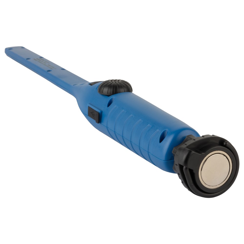 - Магнит на шарнире: Встроенный магнит с возможностью поворота на 180° позволяет закрепить фонарь на металлических поверхностях, освобождая руки для работы.