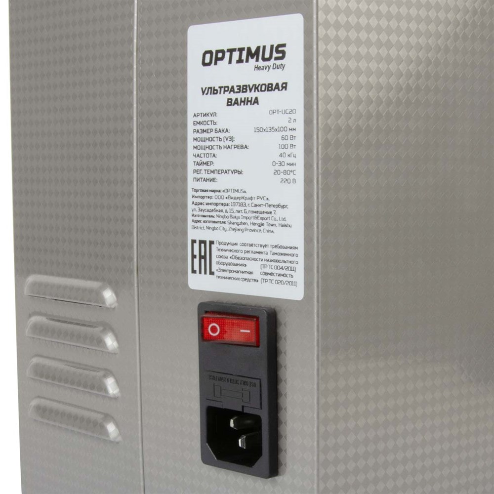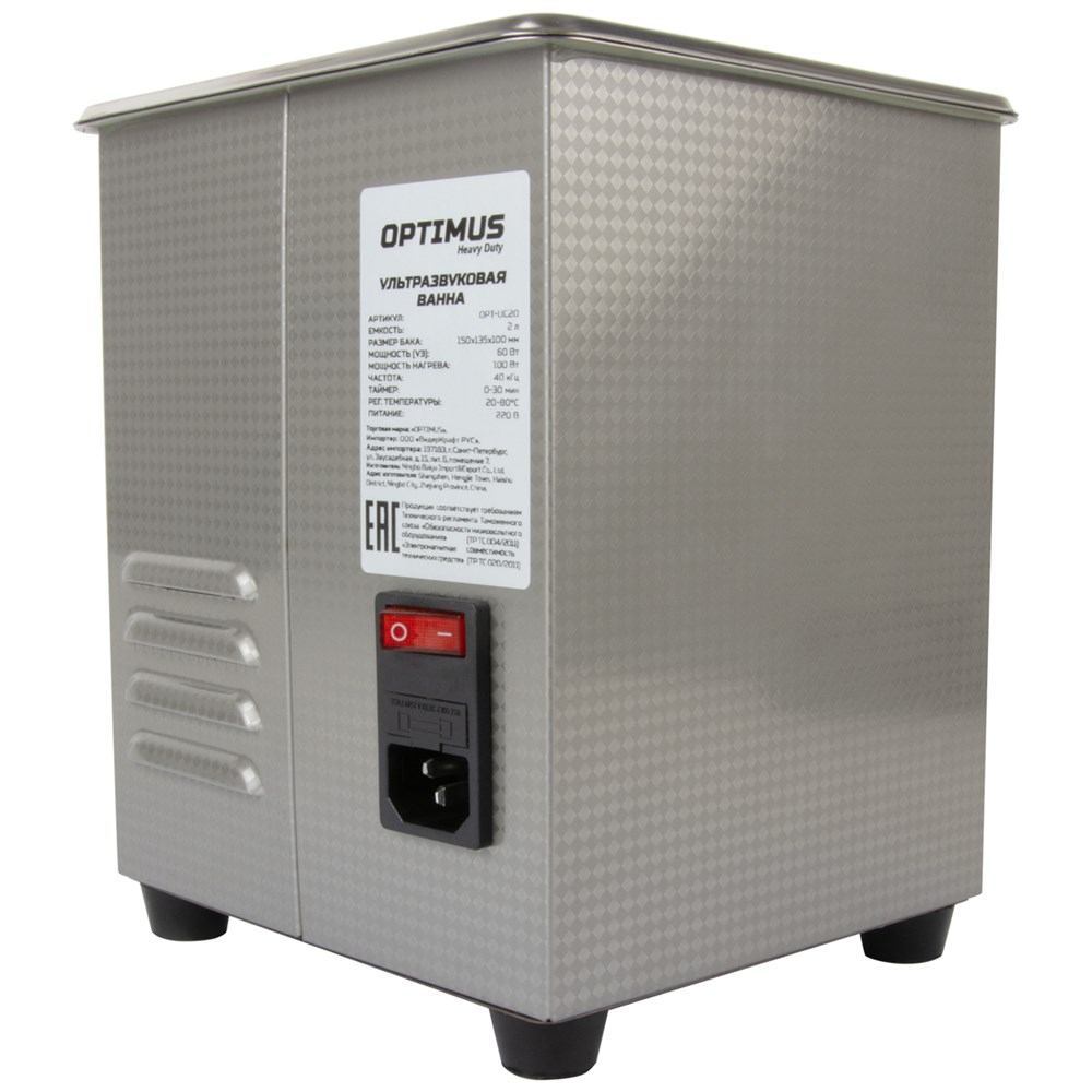 Ультразвуковая ванна OPTIMUS OPT-UC20 для очистки различных деталей, узлов и механизмов от загрязнений путем воздействия высокочастотных ультразвуковых колебаний в моющем растворе. Мойка оснащена механическим таймером до 30 минут и подогревом до 80 °C. Подогрев способствует ускорению физических процессов, сокращается время очистки предметов. Мойка укомплектована корзиной, ножки которой имеют резиновое покрытие, защищающее поверхность бака от механических повреждений. Устройство выполнено из качественной нержавеющей стали, что способствует увеличению срока эксплуатации. Мощность ультразвука 60 Вт, мощность нагрева 100 Вт.