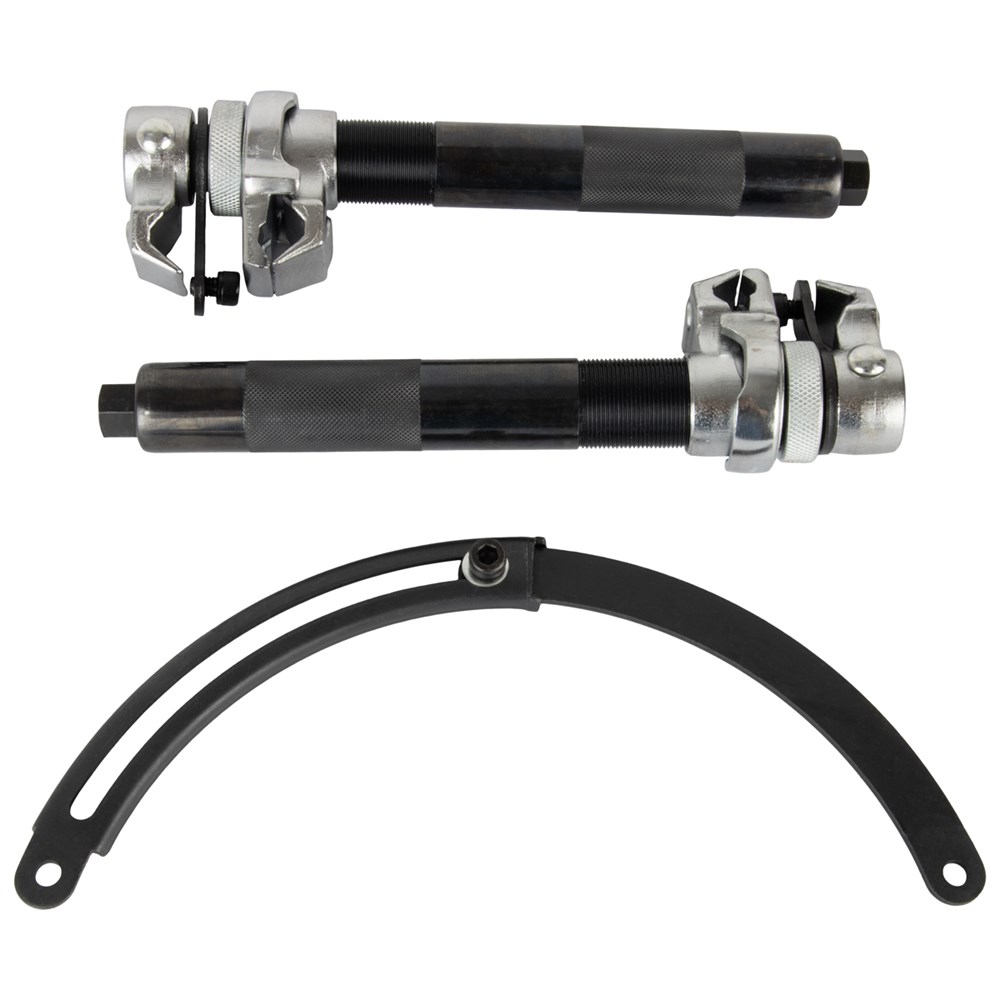 Стяжки предназначены для сжатия пружин при ремонтных работах на амортизаторных стойках автомобиля. Данная модель подходит для работы со стандартными стойками и стойками «Макферсон».
